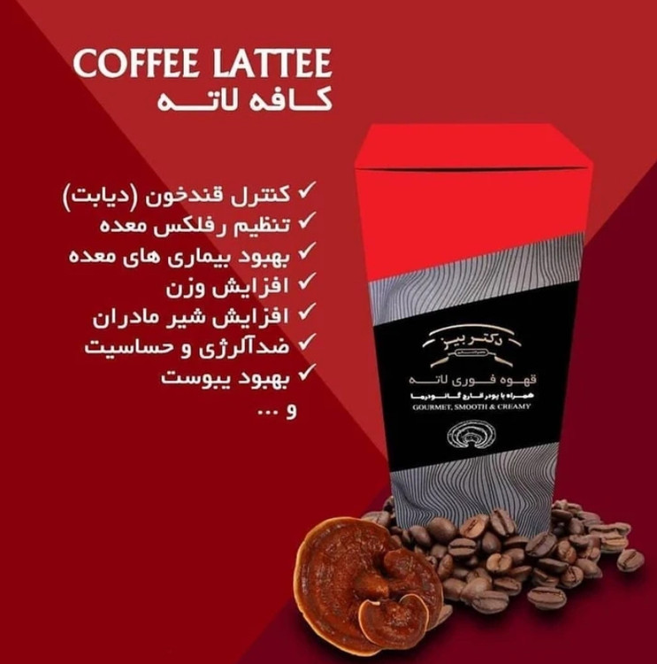 این قهوه لاته حاوی گانودرما است از جمله خواص این قهوه گانودرما: کنترل قند خون، بهبود رفلاکس معده، بهبود بیماریهای معده و ترمیم پرزهای معده میشه. شیرافزا برای مادران شیرده هست، و بهبود دهنده ی یبوست میباشد.